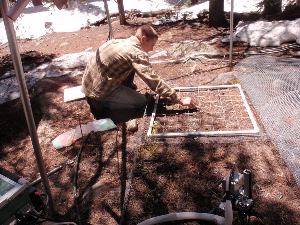 Alpine plant communities are well adapted to often harsh growing conditions above treeline but are now subject to warmer temperatures and changes in snowpack. We’re using long-term observations near the Rocky Mountain Biological Laboratory, as part of the Global Observation Research Initiative in Alpine environments (GLORIA), to examine how alpine plant communities are changing. As part of the ATWE, an active warming experiment, we also studied alpine plant responses to warming and water addition, and associated changes in snowpack and water availability.
